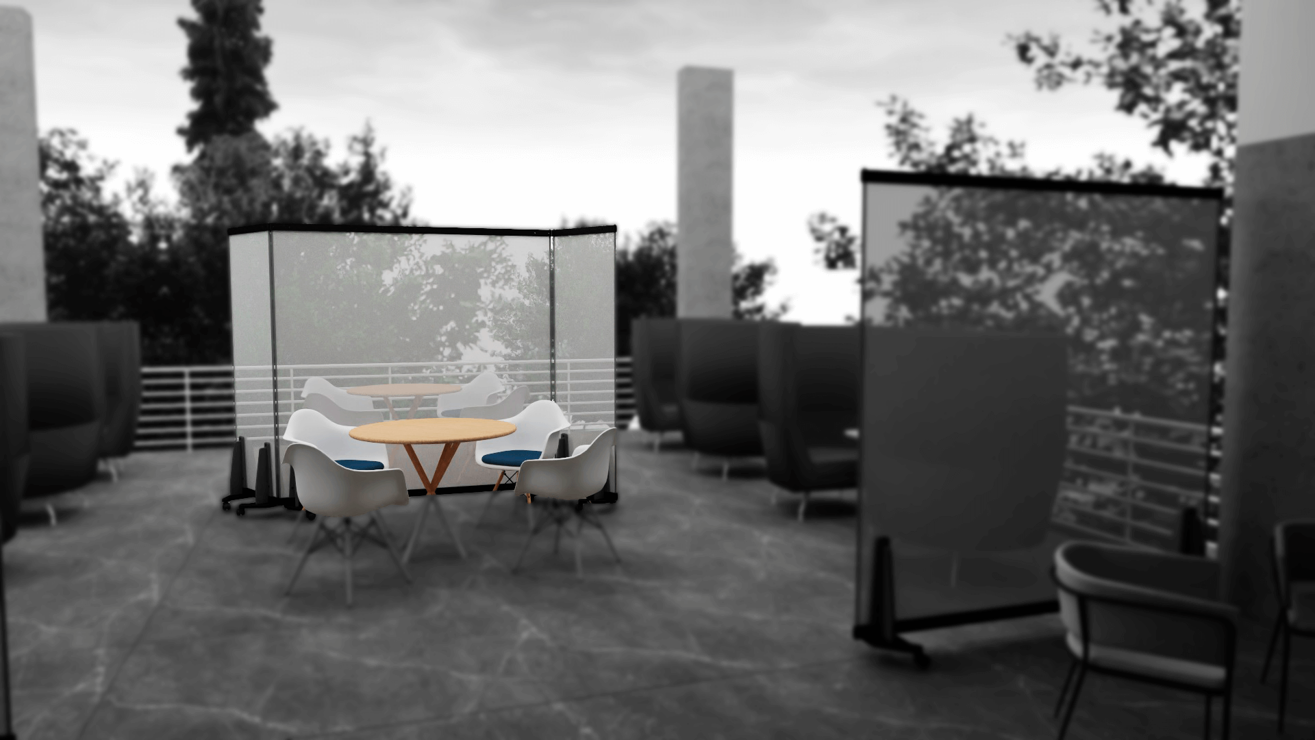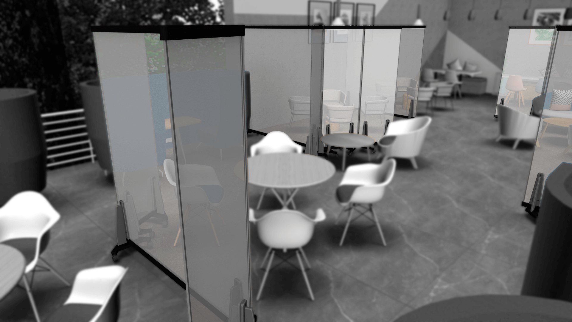 Sistema de paneles móviles y adaptables a su entorno, diseñados para prevenir la transmisión de Coronavirus.
